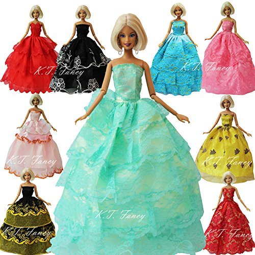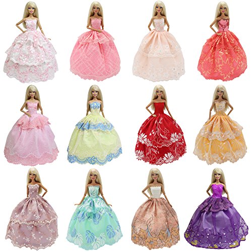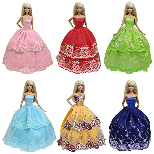 -. Feature : Perfect fit for barbie dolls and other 30cm/11.5" dolls / Handmade quality gorgeous pretty princess dresses for barbie dolls / Dress are made of satin, lace, silk, and tulle ,good quality and 100% brand new / Package includes:6pcs beautiful dream girls party gown clothes for barbie( random style,different fairy dresses,dolls and shoes are no included) / A dream beautiful birthday,christmas,holiday gift for your children.