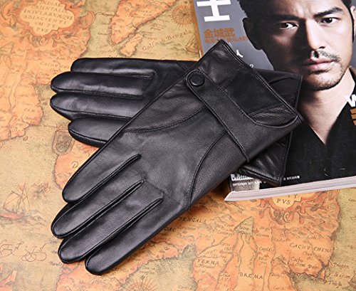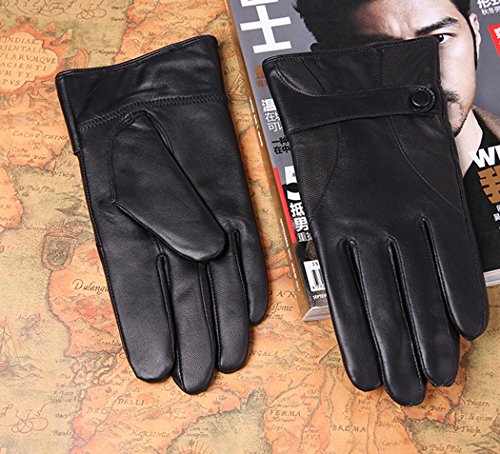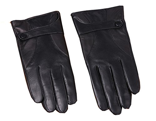 Note:Measure the hand you normally write with at its widest point,excluding the thumb. Our leather gloves are slim fit design. Gloves would be snug at first but leather will stretch. Made of real leather with warm and soft plush lining,offer a unique mix of practical design and directional style, keep your hand warm,and protect your hand when going outside in cold weather conditon.try this fashion warm gloves by HINY,enjoy your winter season. 0