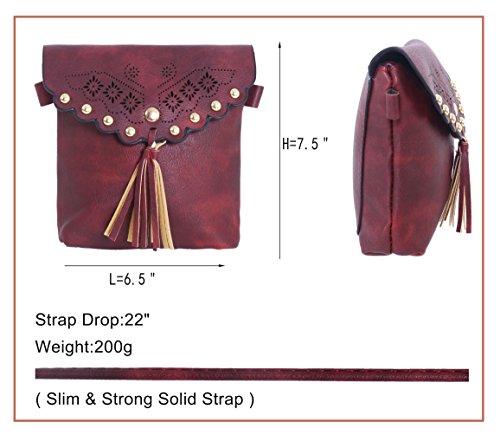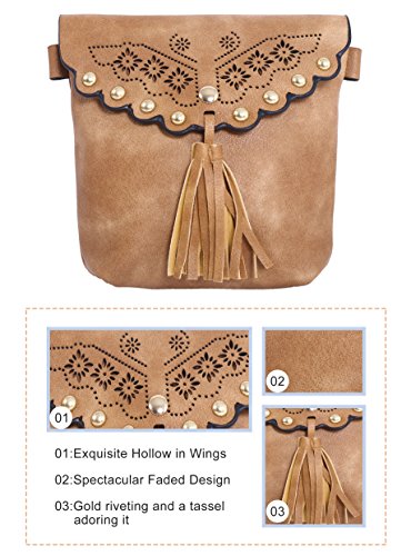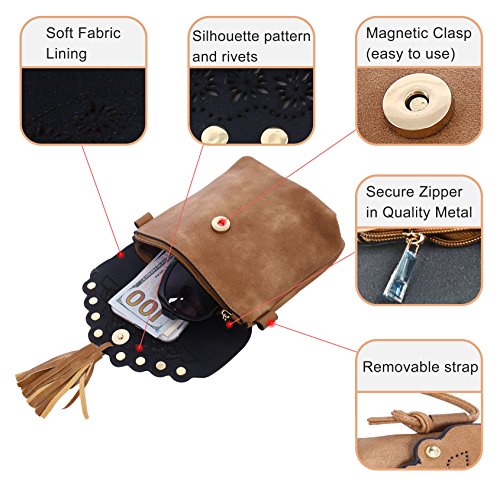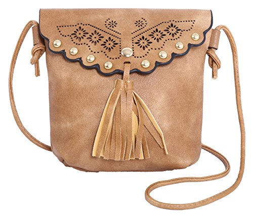 -. Brand : Pulama® -. Department : womens -. Feature : Size is 6.5"L x 1"W x 7.5"H / Has a detachable leather strap(27"drop) for easy removal when you need to / Made of soft PU leather with suede fringes on it. In addition, it has beautiful openwork embroidery and beads on it / Can fit most essentials like an iphone7/7+,credit card, lipstick, keys or a powder mirror / Magnetic closure on envelope shaped flap and one inner fabric lined making it roomy. -. Model : FNDBG-5735 -. PackageQuantity : 1 -. ProductGroup : Shoes -. ProductTypeName : HANDBAG -. Size : Small -. Title : Pulama Vintage Camel Soft PU Leather Suede Crossbody Fringe Cellphone Wallet Purse