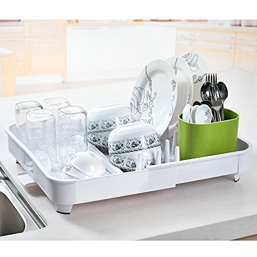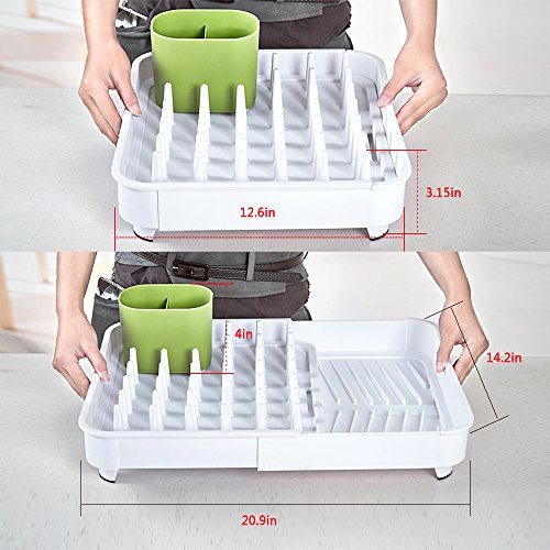 -. Feature : THE NEWEST VERSION : Size upgrade,up to 20.9" long, hold more dishes & bowls, adjustable folding design, unique and chic. / ALL-IN-ONE VERSATILE ORGANIZER : Can store,forks,spoons,plate,chopsticks, mug ,glass,bowls and other dishes,lower flat surface accommodates glasses or mugs,adjustable folding design,can adapt to all kinds of kitchen. / EASY CLEANING:The special design will be easy to clean, the catch tray under the bottom rack,our dishracks have an innovative drainage system that keeps water flowing into the sink,not onto the countertop. / DIMENSION: approx (in inches): 20.9 "L x 14.2"W x 5.9"H(extended)12.6"L x 14.2"W x 5.9"H(folded),gives you interesting look to your kitchen. / FULL LIFETIME WARRANTY:100% satisfaction guarantee, 100% worry-free guarantee, 2-year manufactures guarantee! 180 day return&money back guarantee, we're offer the premium quality and the best service, no matter what reason cause you don't love it, we'll replace it or reimburse you every cent back!