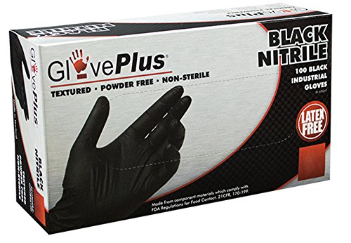 AMMEX - GPNB42100-BX - Nitrile - GlovePlus - Disposable, Powder Free, Industrial, 5 mil, Small, Black (Box of 100)