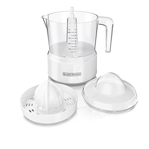 Studio : BLACK DECKER Publisher : BLACK DECKER Binding : Kitchen Product Description Freshly squeezed juice is just a spin away! the BLACK DECKER 32-oz. Citrus juicer features a dual-purpose, self-reversing cone that ensures maximum juice extraction from large and small citrus! juice flows into the easy-pour pitcher, which includes measurement markings for accurate use in recipes and mixed drinks. Plus, all removable parts are dishwasher-safe for easy cleanup. 0