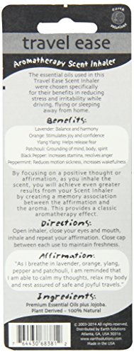 ReleaseDate : 2014-09-15 Studio : Earth Solutions Publisher : Earth Solutions Binding : Health and Beauty Product Description Reduce your fear of flying with self-hypnosis and a calming aromatherapy scent inhaler. Traveling exposes individuals to unpleasant encounters, confined spaces, unfamiliar quarters and poor sleep. Travel ease scent inhaler helps get one through their journey with ease and comfort. 0