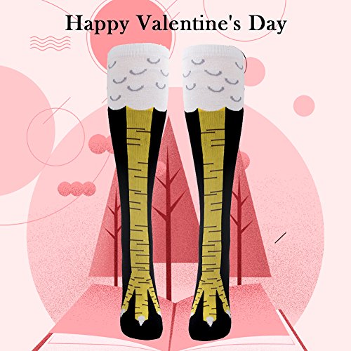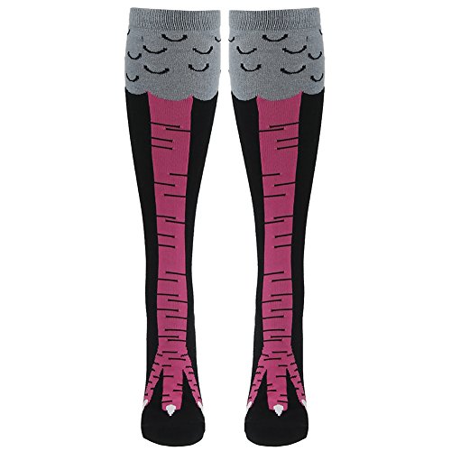 -. Feature : NOTE: Two Sizes-Medium fit people 5-8(US) (TUBE LENGTH 12.60in); Large fit people 6.5-9.5(US) (TUBE LENGTH 15.35in). Super Good Elasticity! Quality Guarantee! Soft touch! Breathable! / FASHION DESIGN: The funny designed socks make your legs look leaner. This is must have for all women. They are the perfect socks for making any outfit more fun. Perfect for your fun loving wild and crazy persona. / COOL AND COMFORTABLE: Moisture Control, Odor Control, Breathable Mesh, Blister Control, Soft Blend , Premium Endurance, Smooth Seam; Highly elastic and durable, flexible and comfortable, it will fit for your legs. The elastic bands at the top of the socks will not make you feel uncomfortable, and keep you styling all day. / OCCASIONS: Casual, wear to various kinds of parties, exercise, etc. Suitable for sports, such as football, rugby, hockey, soccer, basketball, running etc. Colorful socks add a unique element to any outfit, from dressy suits to casual jeans. / EXCELLENT GIFT CHOICE: Everybody needs more socks. Funny Crazy Chicken Cluck Legs Knee High Socks keep your warm with fashionable look! Fashion funny Chicken Cluck Legs socks, perfect gift for your friends.