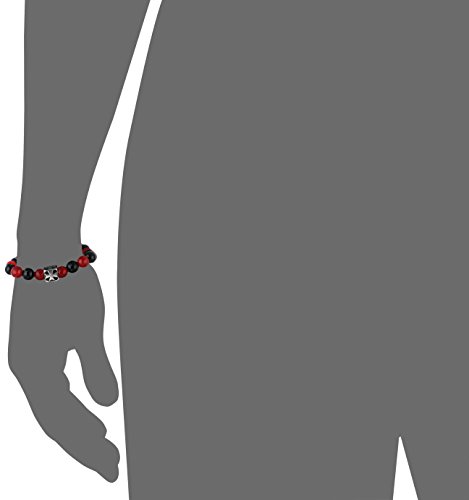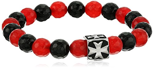 Men's Simulated Black Onyx and Ruby Beaded with Cross Medallion Bracelet, 8"x 0.3"
