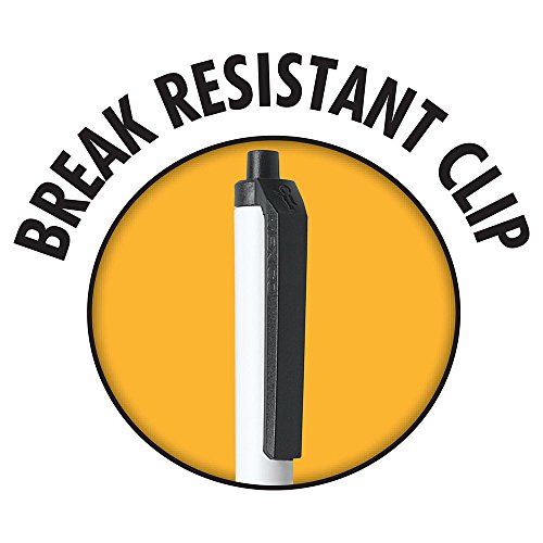 -. Feature : Comfortable round barrel design / Break-resistant pocket clip / 1.0 mm medium point in black, blue, red, green, pink, purple, lime green, and turquoise ink / Non-refillable