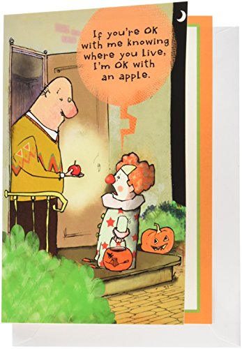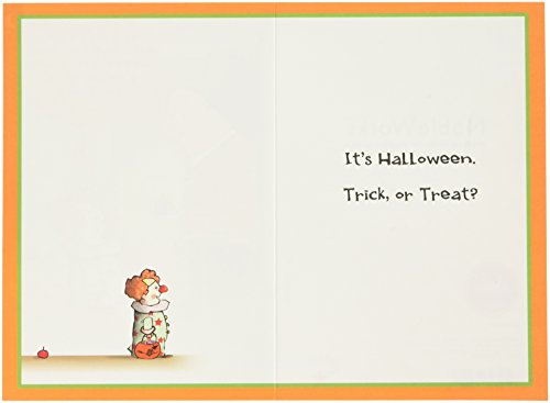 -. Feature : Card's inside greetings: It'S Halloween. Trick, Or Treat? / FREE Shipping / 7" x 5" Halloween card with matching envelope. / Hand folded and P.R.Inted in NJ, not in China. / Amazon A-to-Z Guarantee. The only question we might ask is: 'Does your mother know?' Rest a sure we'll never tell...
