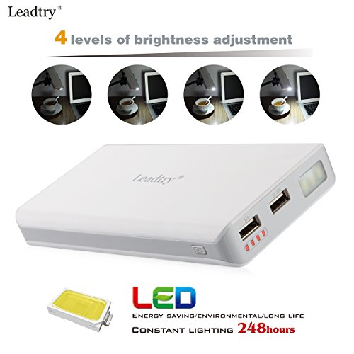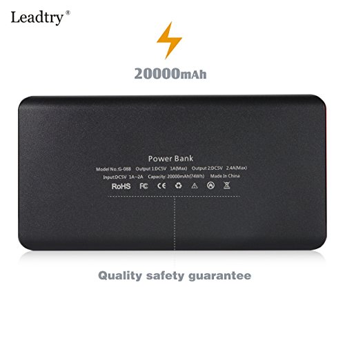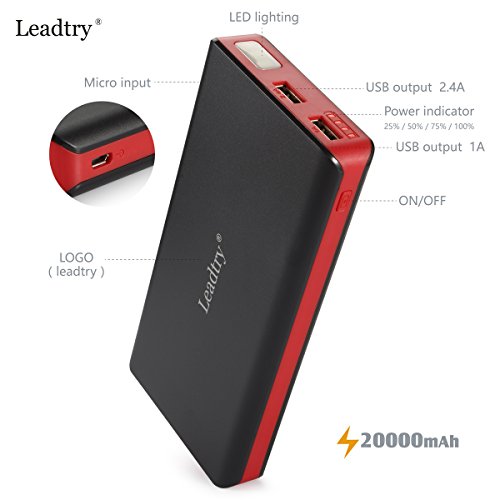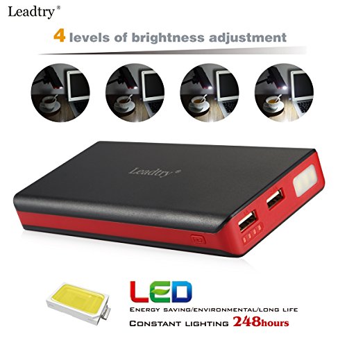 -. Binding : Wireless Phone Accessory -. Brand : LEADTRY -. Feature : High capacity 20000mAh can charge an iPhone 6 for 10 times, 6Plus for 6 times Galaxy S5 over 7 times,iPad Air2 for 2 times. / Super-fast charge output (5V / 2.4A and 5V / 1A) through dual USB ports (5V / 2.4A and 5V / 1A) Allow for simultaneous charging of your iPad, iPhone, Android, and more at high speed. / There are 4 classes of lighting adjustable for you to use it in various situations / Power capacity indication light: 25%, 50%. 75%, 100%. Ensure you check and control power bank status easily. / The power bank embedded with high capacity Li-ion cell, its quality had been strictly test before assemble. You may rest assured of its quality and safety -. Label : LeadTry -. Manufacturer : LeadTry -. PackageQuantity : 1 -. ProductGroup : Wireless -. ProductTypeName : WIRELESS_ACCESSORY -. Publisher : LeadTry -. Studio : LeadTry -. Title : Power Bank Leadtry &Reg; 20000mah External Battery with Powerful Dual USB Port Portable Charger Backup Pack Build in Flash Light for Iphone 6s 6 Plus, Ipad and Samsung Smart Phone, Tablet Pcs