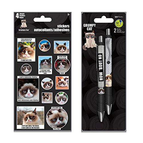 -. Feature : Take all your "NOPEs" wherever you go with this Officially Licensed Grumpy Cat Pen and Sticker Set. / Includes 2 Soft Grip, Smooth Writing 0.7mm Gel Pens each with their own unique design and 4 sheets of Full Color Grumpy Cat Stickers (2 repeat sheets with over 50 stickers!) / This set is perfect for stocking stuffers, gifts for fur moms and fur dads, photo albums, arts and crafts, scrapbooking, Greeting Cards, and much more!