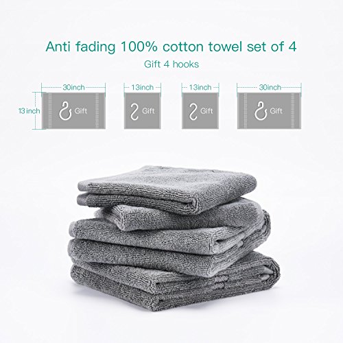 EASY TO HANG - Towels set includes 2 hand towels, and 2 washcloths, Each washcloth have a hanging ring, you can hanging from its loop, in addition we give 4 hooks each set of towels as a gift.