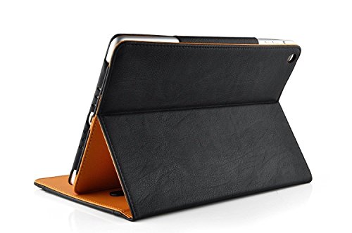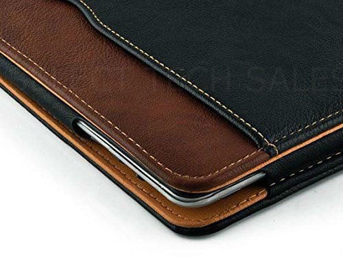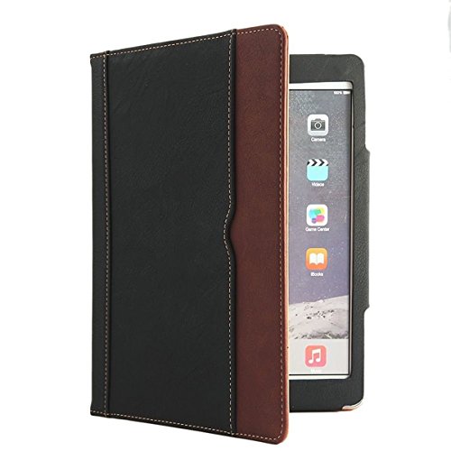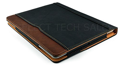New S-Tech Black and Tan Apple iPad Mini 1 2 3 Models Soft Leather Wallet Smart Cover with Sleep / Wake Feature Flip Case