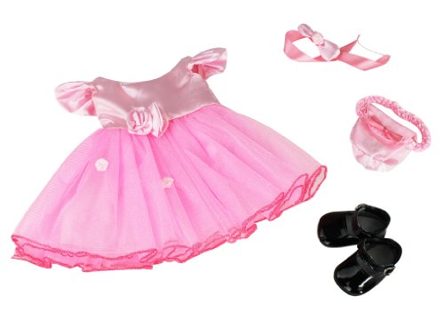 Doll Clothes for American Girl Dolls: 4 Piece Fancy Party Dress Outfit - "Dress Along Dolly" (Includes Party Dress, Headband, Purse, and Dress Shoes): From the makers of the best selling Ride Along Dolly Bike Seat comes a line of doll clothes that will make your favorite American Girl or comparably sized dolls' heart melt. Dress Along Dolly Clothes are all hand made, and custom designed to give your doll the unique look that you want. You won't find these clothes in any store. These are truly unique designs exclusive to Dress Along Dolly. Show off your doll in style. Fits any standard doll of approximately 18" in height, including American Girl Dolls.Feature