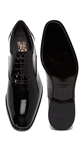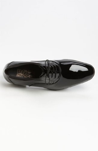 Studio : Salvatore Ferragamo Publisher : Salvatore Ferragamo Binding : Apparel Product Description Glossy patent leather composes these Salvatore Ferragamo shoes. Tonal grosgrain trim accents the top. Waxed laces. Full leather sock liner. Welted to a leather sole with a stacked rubber heel. 0