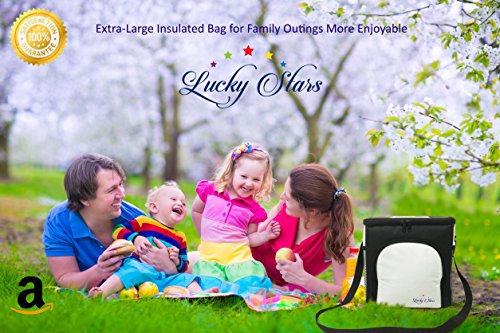 Lucky Stars Adult Lunch Box Insulated Lunch Bag Large Cooler Tote Bag with Front Side Pockets Adjustable Shoulder Strap For Men, Women, Adults, Kids, Camping, Picnic, Work, School, Outing, Sports