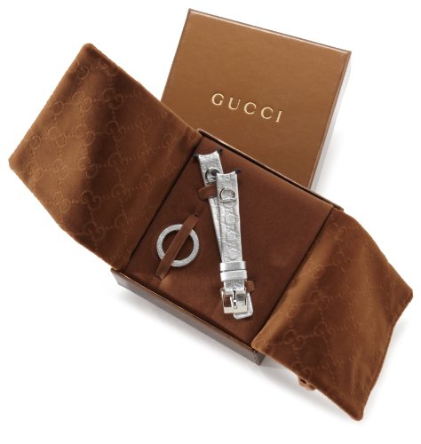 Feature : Stainless steel case / Silver leather bezel / Silver Guccissima leather strap with ardillon buckle / Includes three interchangeable pieces that fit any U-play watch with a small case size / Quick and easy to change
