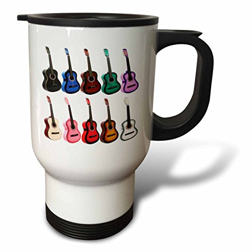 3dRose Colorful Guitars Travel Mug, 14-Ounce