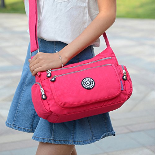 | Tiny Chou Multilayer Zipper Pockets Water Resistant Nylon Fabric Crossbody Bag Shoulder Bag for Girl |