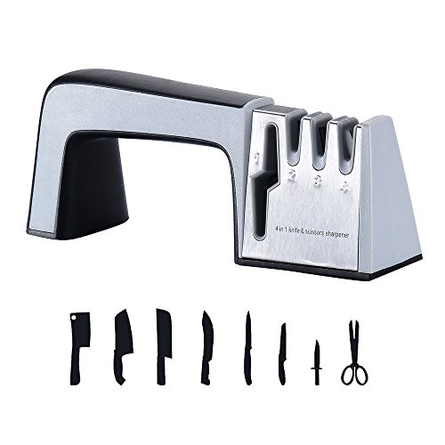 Knife Sharpener, 4 in 1 Knife and Scissor Sharpener Professional Kitchen Knife and Scissor Sharpening Device Ergonomic Designed for All Sized Household Knives