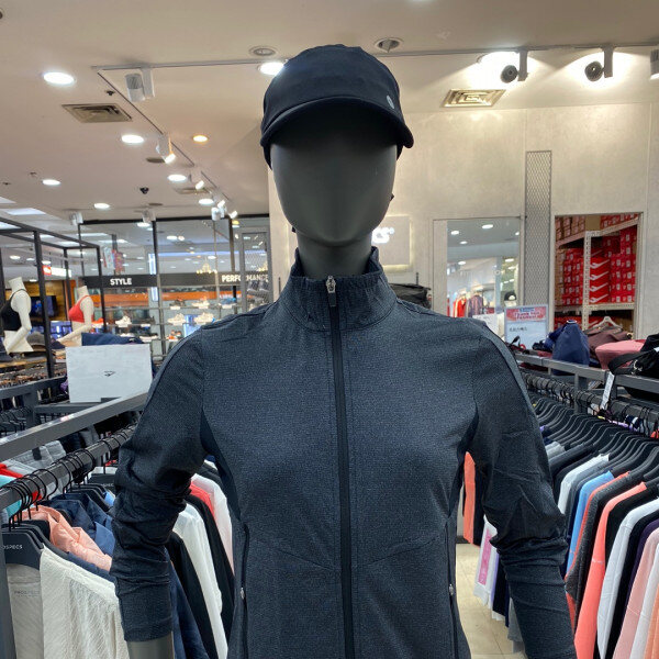 x나일론 스판 소재의 봄 스트라이프 니트 트레이닝 자켓x부드러운 터치감에 신축성이 좋은 원단을 사용하여 활동성이 우수x멜란지 스트라이프 소재에 솔리드 원단의 셔링 배색을 적용하여 여성스러움을 강조한 디자인xWN-S161스타일과 세트착장 제안