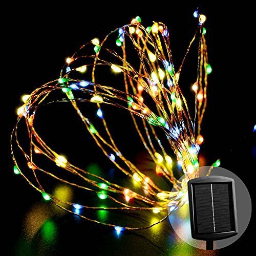 LUCKLED OUTDOOR SOLAR POWERED STRING LIGHTS, 120 LED MULTI COLOR FAIRY STARRY COPPER WIRE ROPE LIGHTS FOR INDOOR, GARDEN, HOME, WEDDING, CHRISTMAS PARTY AND HOLIDAY DECORATIONS