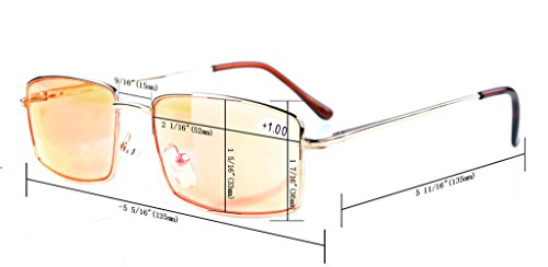 -. Brand : Eyekepper -. Feature : PRODUCTS DIMENSION-Frame material: Metal,Lens width: 2 1/8" (54mm),Frame width: 5 5/16"(135mm),Lens height: 1 5/16" (33mm),Frame height: 1 5/16" (34mm),Bridge (DBL): 7/16"(16mm),Temple length: 5 5/16"(135mm),Spring hinge: Yes,Lenses: Aspheric,Head size: Medium to wider / EYEKEPPER HALF RIM COMPUTER EYEGLASSES- Obliterate Blue Light with our patented computer glasses that will keep your eyes safe from all harmful blue light, designed for anyone using an electronic device such as computers, T.V.'s or phones.This meets the requirements of the U.S. FDA, and exceeds European Union requirements / EYEKEPPER SPRING TEMPLE COMPUTER GMAING READING GLASSES-included a microfiber cloth and hard zipper case, Superior Blue Light Blocking Computer Glasses that will reduce eye strain when working on a computer, tablet, phone or television.Excellent for Relieving Visual Discomfort and fatigue associated with using a computer for long periods of time / QUALITY METAL FRAME -FDA Registered Gamer Glasses and Computer Eyewear,Accord with ANSI Z80.3-2010,Accord with BS EN ISO 12312-1:2013 and EN14139:2010,Accord with AS/NZS 1067:2009,Quality metal frame,lenses and have spring-loaded hinges, No Longer spend nights lying awake after using a Computer for long periods of time / LIFETIME BREAKAGE WARRANTY&30 DAY MONEY BACK GUARANTEE: In case any broken problem happens, contact the seller of Eyekepper without hesitation to solve the problem until satisfaction. Eyekepper provides lifetime after sale service for all Eyekepper computer readers glasses. Customers can return and get refunded for any reason. You have no risk to try -. Label : Wenzhou Cofly Optical Co.,Ltd -. Manufacturer : Wenzhou Cofly Optical Co.,Ltd -. ProductGroup : Health and Beauty -. ProductTypeName : PERSONAL_CARE_APPLIANCE -. Publisher : Wenzhou Cofly Optical Co.,Ltd -. Studio : Wenzhou Cofly Optical Co.,Ltd -. Title : Eyekepper Classic Metal Frame Half Rim Spring Temples Computer Reading Glasses Readers