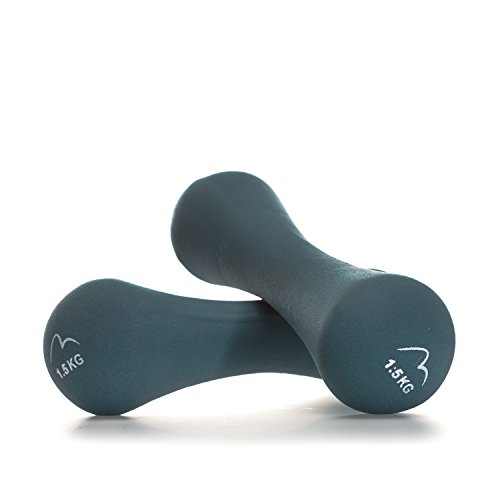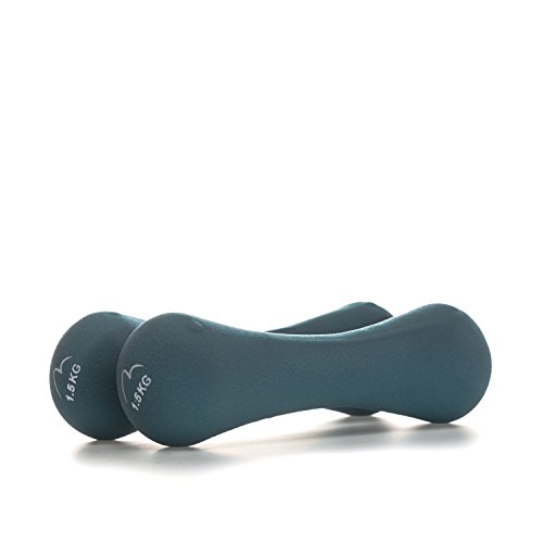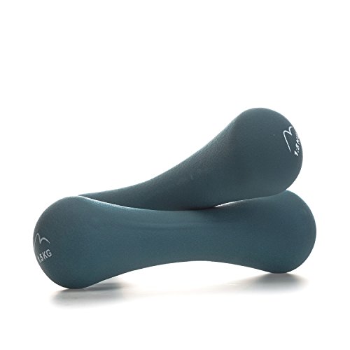 Product DescriptionMore Mile 1.5kg Neoprene Bone Dumbbell Set in Blue- Set comes with two 1.5kg dumbbells- Ergonomically shaped- Ref: MM26010