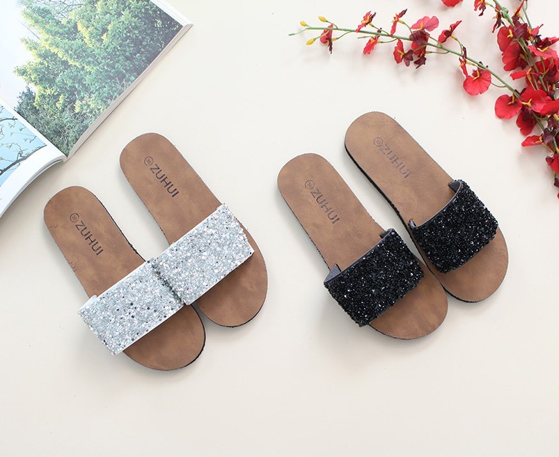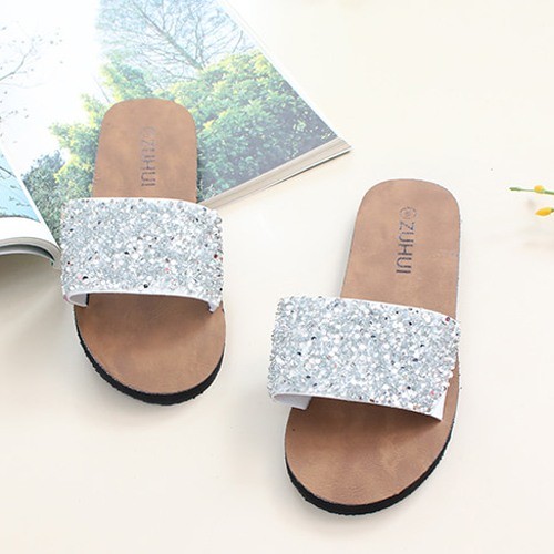 商品名:サンダル レディース ペタンコ キラキラ 2018 春 ファッション 靴 婦人靴