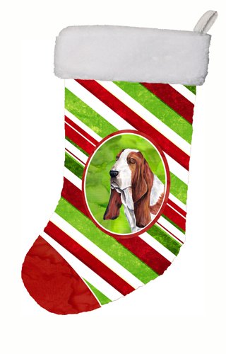 Caroline's Treasures SC9332-CS Basset Hound Candy Cane Holiday Christmas Stocking, 11 x 18", Multicolor