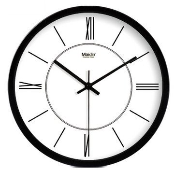 -. Feature : Classic, yet stylish, black and white design / Flat glass front covers clock face to protect from dust and debris / Non-ticking, quiet and smooth sweeping movement of clock hands / Measures 12" in diameter / Requires 1 AA battery (NOT included)