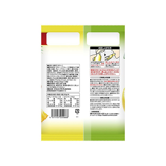원본상품명: オリヒロプランデュ ぷるんと蒻ゼリパウチ グレプフルツ+パイナップル 20gx12個×6袋