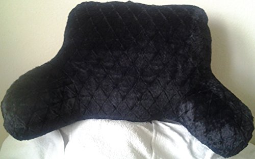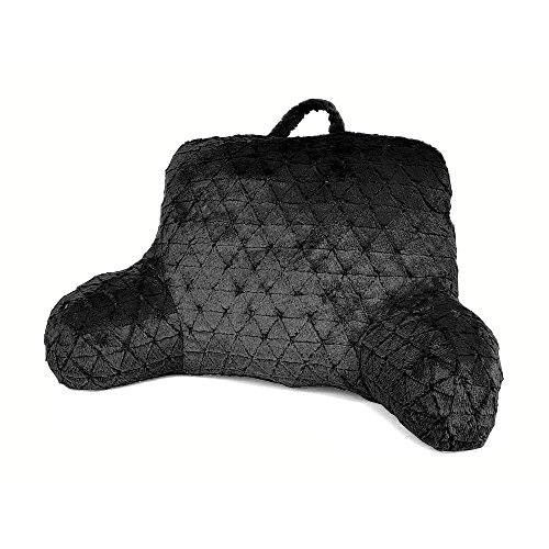 Product Description Enjoy a comfy spot for reading, watching t.v. or chatting with friends with this Black Embossed Cross Stitch faux fur bedrest. For a cozy spot on the bed, floor or couch, you can use this pillow to prop yourself up in a relaxed seated position. The handle on top makes it easy to move. 0