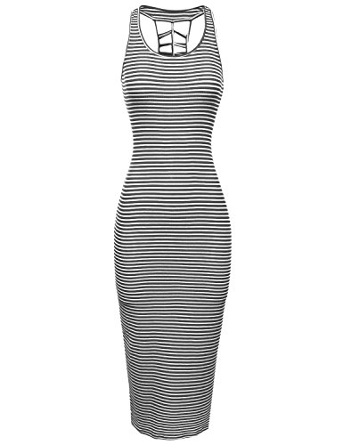 Sleeveless long striped ribbed caged back maxi dress