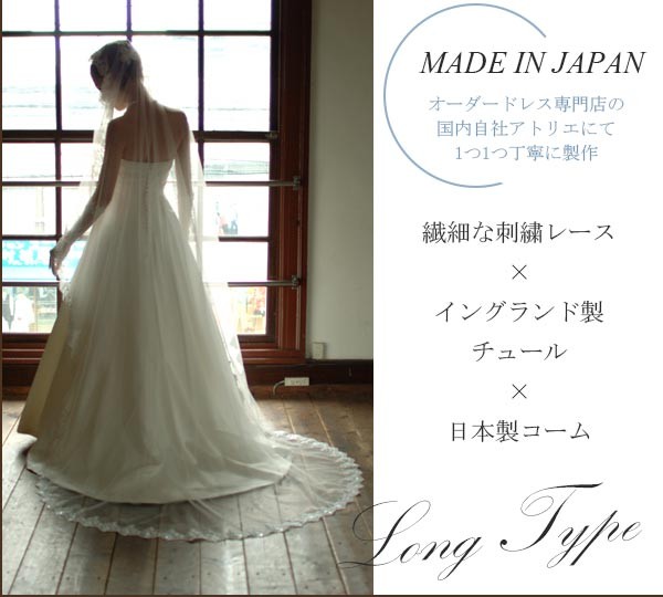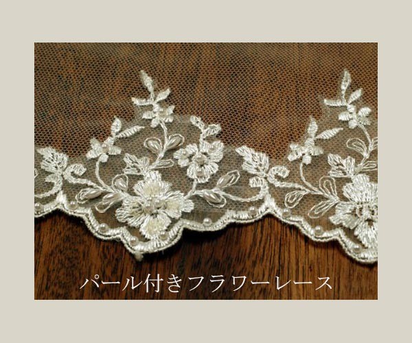 パールつきの刺繍レースが美しい、ロング・マリアベールです。