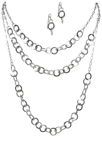 -. Title : Fashion Costume Jewelry Silvertone Disc Chain Multi Layered Necklace Earring Set for Women