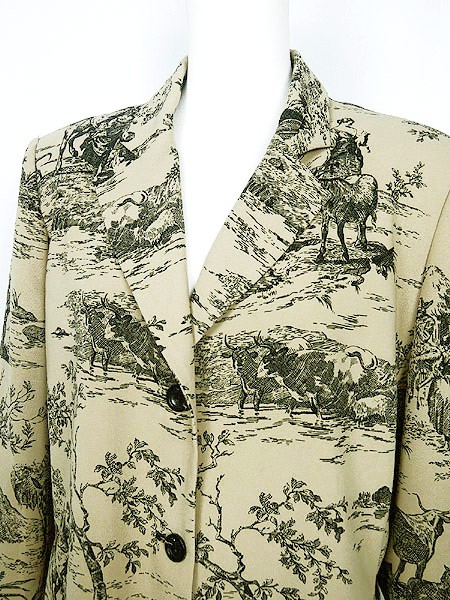 Ladies ブランド- カラーベージュ メール便不可 コンディション★★★ 素材記載なし 表記サイズ記載なし スタッフコメント裏地あり、肩パット付き。左背中付近、左裾上付近に薄いシミあり。両袖口付近に薄いシミあり。 実寸サイズ 着丈 65 cm 身幅 52 cm 肩幅 41 cm 袖丈 61 cm ※ウエスト・ヒップ以外は平置き採寸