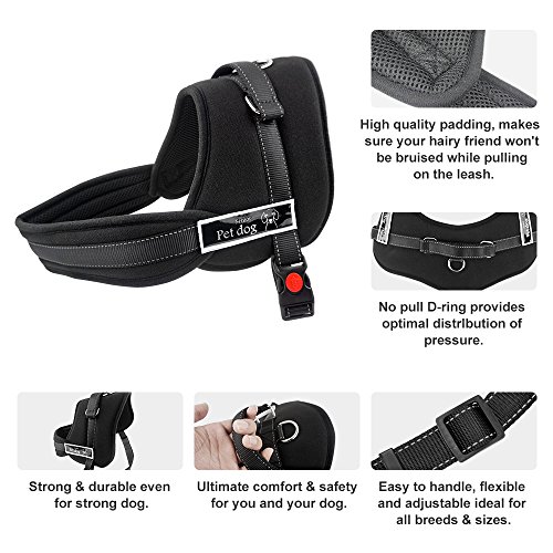 Product Description: Notice: Size: Medium. Chest Perimeter: 26"- 31.5". Size: Large. Chest Perimeter: 28"- 35". Size: X Large. Chest Perimeter: 31.5"- 43". Please measure accurately before purchase. Why Choose Lemate? 1. The Lemate means high-quality products for reasonable prices. Our pet supplies are stylishly designed and produced with care to ensure high standard product. 2. We boast excellent customer service with a high satisfaction rating, with our team of representatives ready to assist you Monday to Friday, from 9:30 AM to 6:00 PM Pacific Time. 3. We pack and ship your orders directly from our US-based warehouse, and tracking information will be provided to you as soon as it's available. Description Lemate Dog Harness is Stylish, Durable, Scratch-Resistant material. Large loading capacity greatly improves tensile strength. Easy to put on and take off Harness. Comfortable Lightweight Mesh Lining with Soft Sponge Padding in chest and belly. Adjustable straps allow a custom fit for your pooch. Safety Features include Reflective Material to Ensure Visibility at Night. Compatibility: Compatible with big dog such as Retrievers, shepherds, pitbulls, wolfhounds, Labradors etc. 0 |