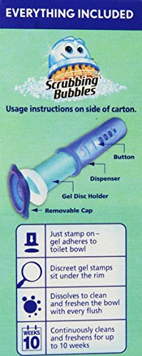 -. Binding : Health and Beauty -. Brand : Scrubbing Bubbles -. Color : A769 -. EAN : 0025700700913 -. Feature : Scrubbing Bubbles Fresh Clean Discs Toilet Cleaning Gel. / Each package contains:- One disposable, easy-to-use dispenser - One gel holder (gel holder contains six gel discs) / You don't have to take on toilet cleaning alone. Scrubbing Bubbles® Toilet Cleaning Gel takes care of the tough work for you. / Simply use the dispenser to stamp a gel disc onto the inside of your toilet bowl. / Each disc lasts up to one week and dissolves away leaving no residue behind. Your toilet bowl will remain cleaner, longer-with practically zero effort. -. IsAdultProduct : 0 -. Label : Scrubbing Bubbles -. Manufacturer : Scrubbing Bubbles -. Model : 70091 -. MPN : 70091 -. PackageQuantity : 12 -. PartNumber : 70091 -. ProductGroup : Health and Beauty -. ProductTypeName : HEALTH_PERSONAL_CARE -. Publisher : Scrubbing Bubbles -. Studio : Scrubbing Bubbles -. Title : Scrubbing Bubbles Fresh Clean Discs Toilet Cleaning Gel -. UPC : 025700700913