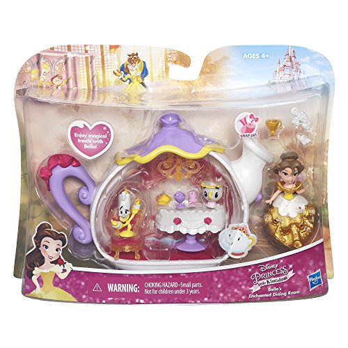 - Includes doll, bodice, peplum, skirt, teapot, 7 accessories, and 3 Snap-ins.
