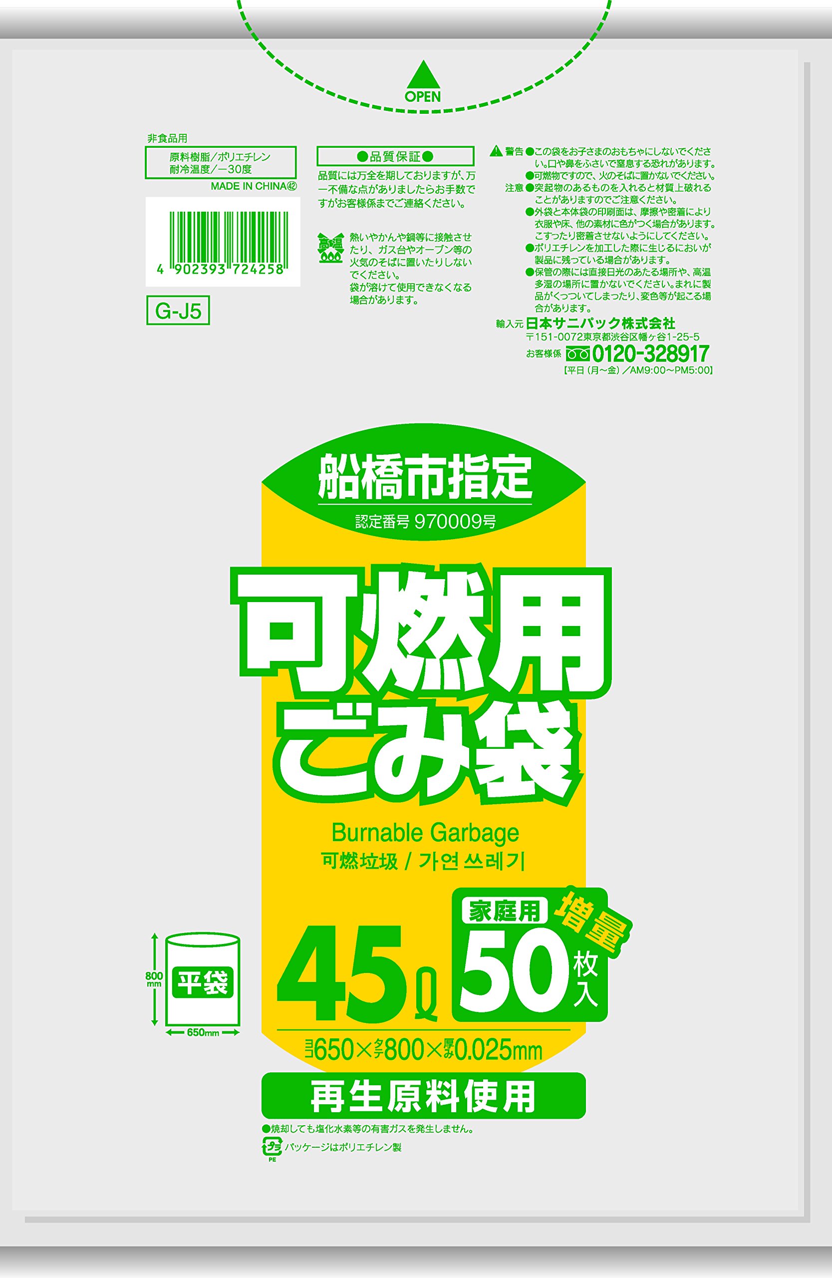 Japan Sanipakku Funabashi specified combustible 45L 50 sheets