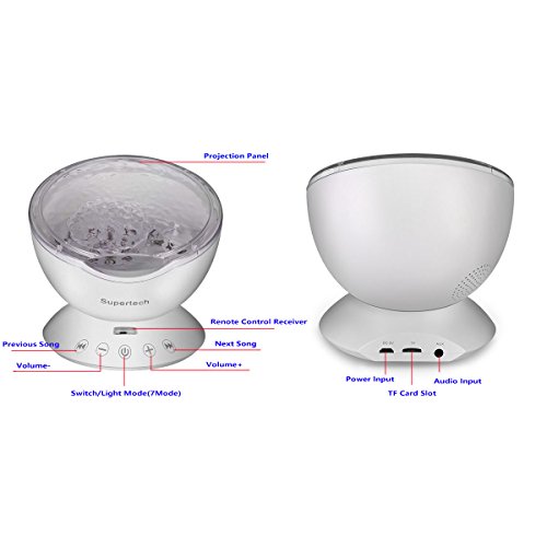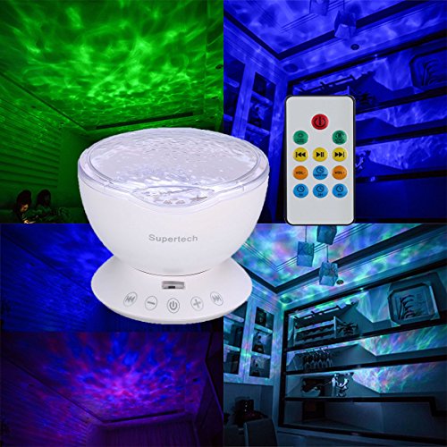 -. Title : Supertech Multicolor Ocean Wave Projector Night Light Lamp With Built-in Music Player and Remote Control In Bedroom Living room For Nursery Baby Kids Children Adults