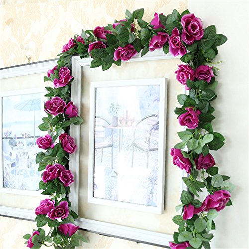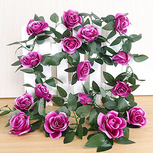 Crt Gucy 16FT 2 Pcs Fake Silk Rose Vine Garland Artificial Flowers plants for Hotel Wedding Home Party Garden Craft Art Décor,Dark Purple