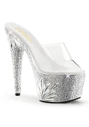 Product DescriptionSlide Featuring Entire Bottom Fully Encrusted W/Rhinestones W/Flower. 7" Heel, 2 3/4" Platform Slide.0