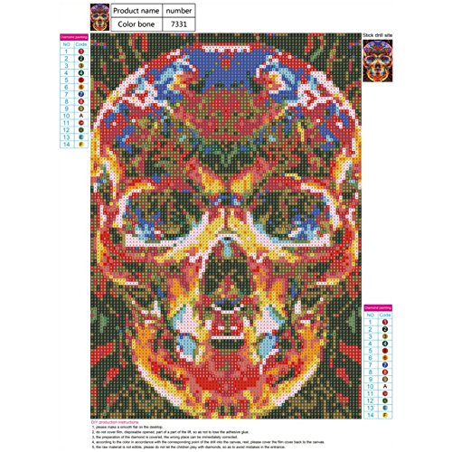 Adarl 5D DIY Full Diamond Painting Rhinestone Pictures Of Crystals Embroidery Kits Arts, Crafts & Sewing Cross Stitch(Color Skull)