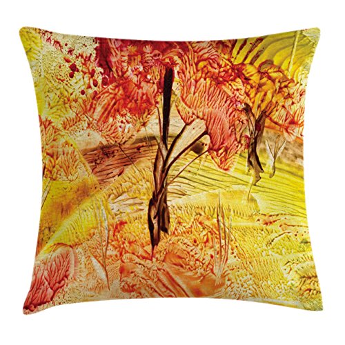 Watercolor Flower Throw Pillow Cushion Cover by Ambesonne, Idyllic Field with Autumn Tree in Fa...