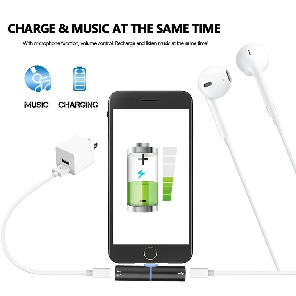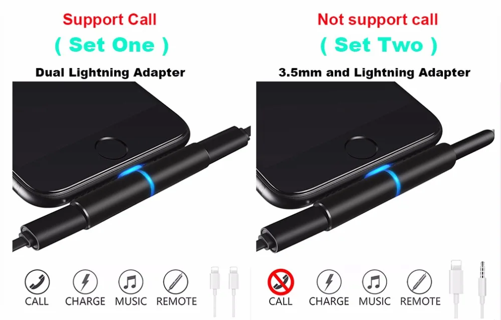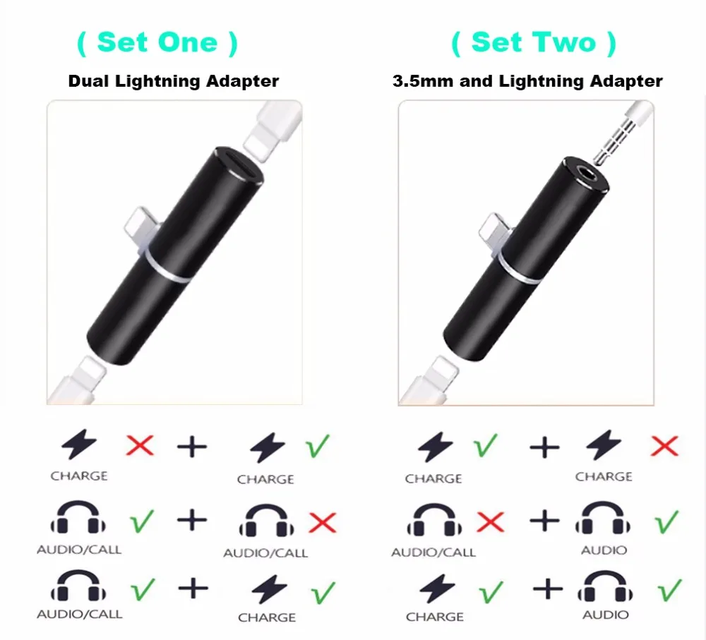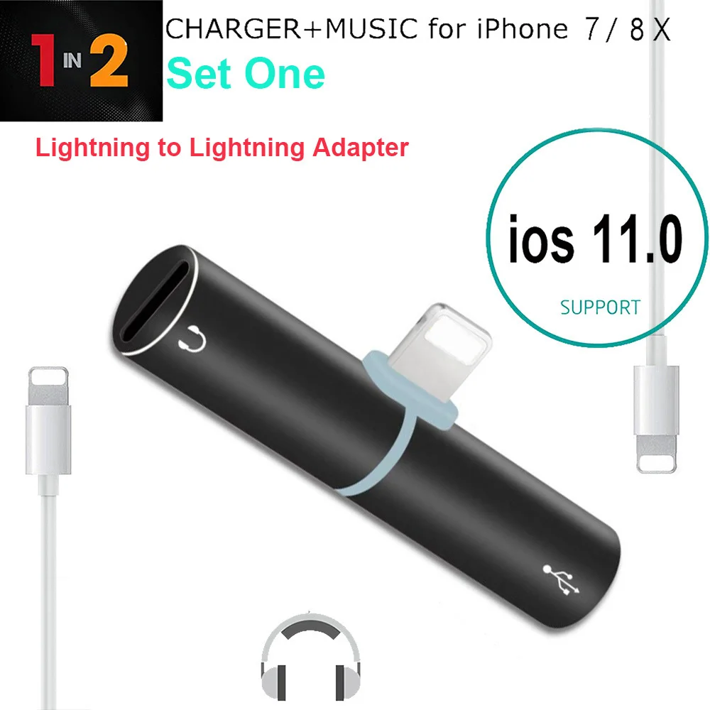 Style 1:2IN1 Audio Cable Adapter For Lightning Headphone