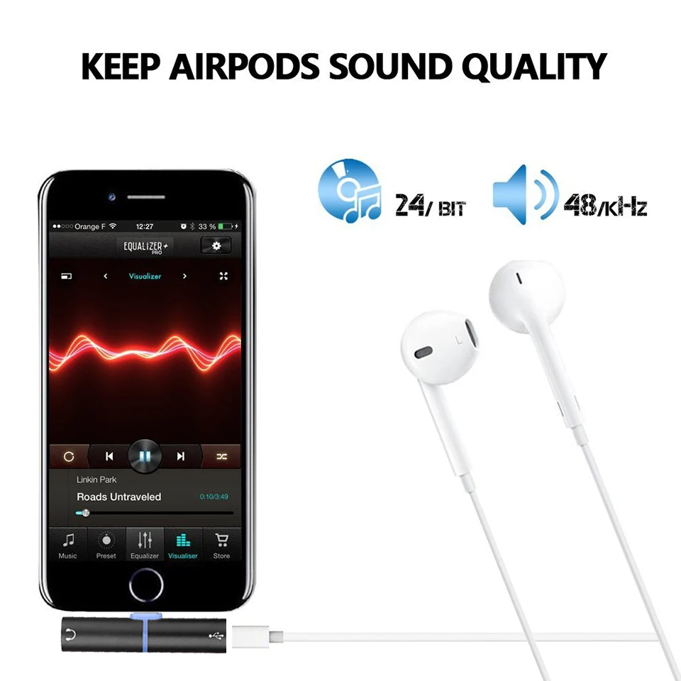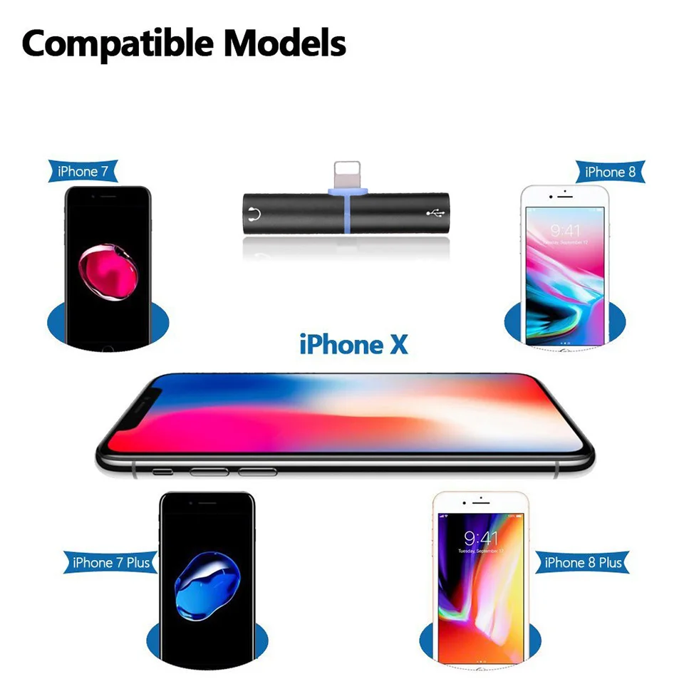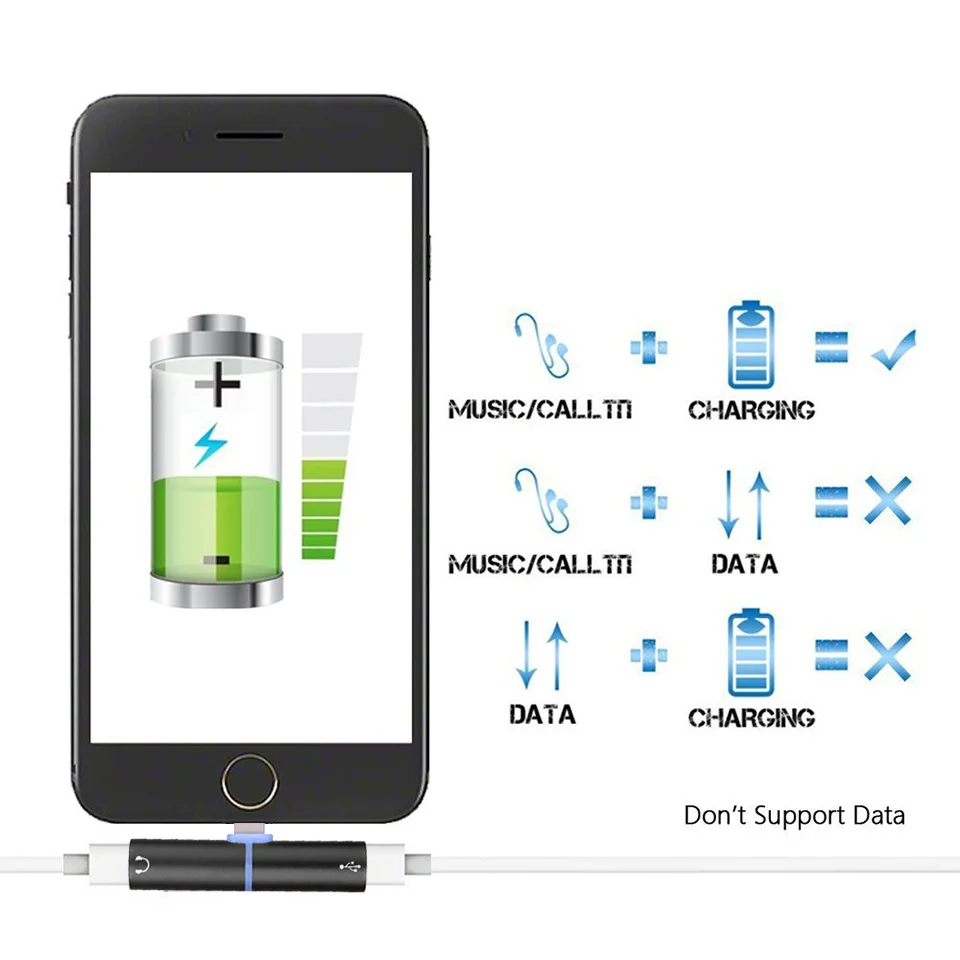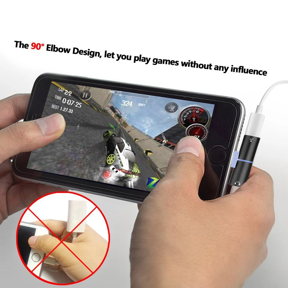 Style 1:2IN1 Audio Cable Adapter For Lightning Headphone