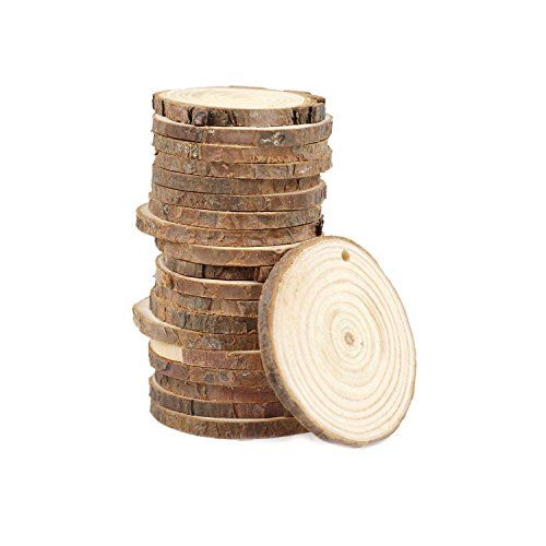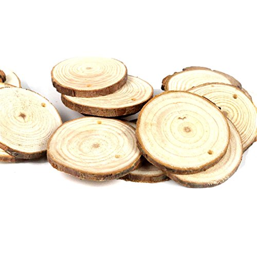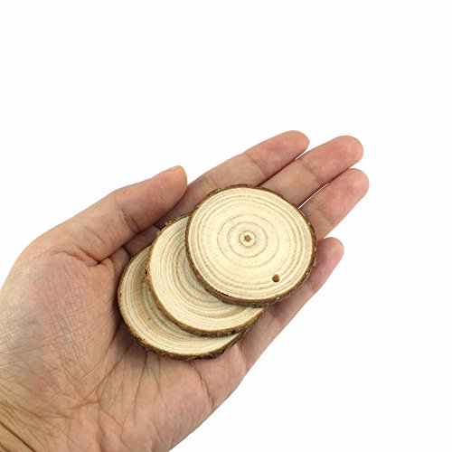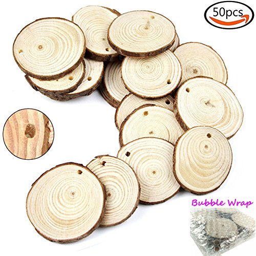 Goodlucky 50pcs 1.6"-2" Unfinished Predrilled Natural Wood Slices