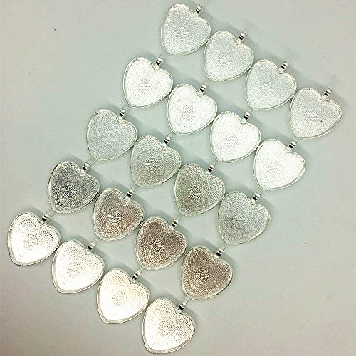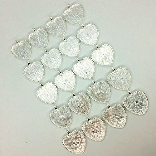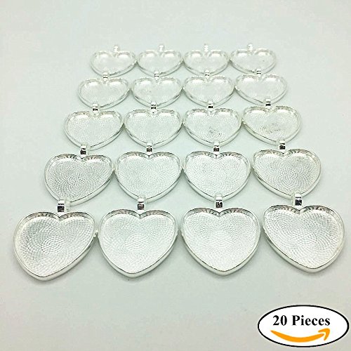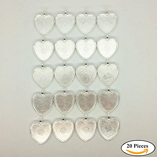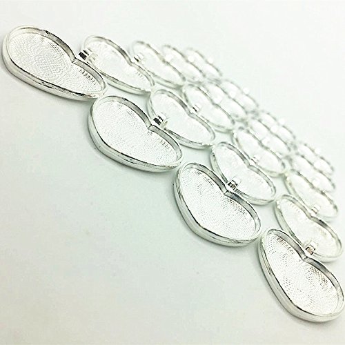 IGOGO 20 PCS Heart Pendant Trays Pendant Blanks Cameo Bezel Cabochon Settings - 25 mm 1 Inch Silver Color