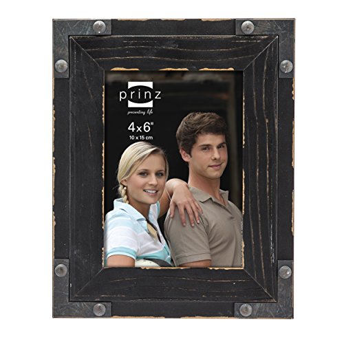 Prinz Brody Distressed Wood Frame with Faux Metal Corners, 4 by 6-Inch, Black