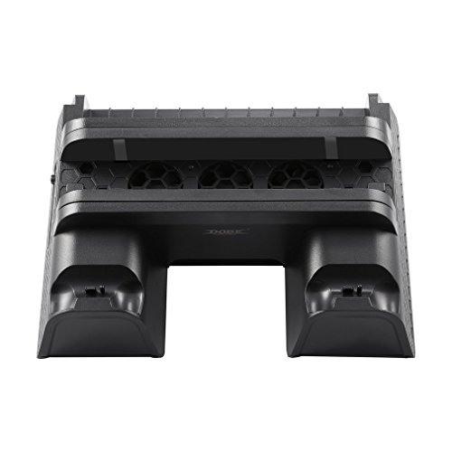 Multifunctional Stand:The ps4 fan can be used as PS4/PS4 Slim/PS4 Pro console vertical stand & cooling fans & dual wireless controllers charging station & video games DVD discs storage.